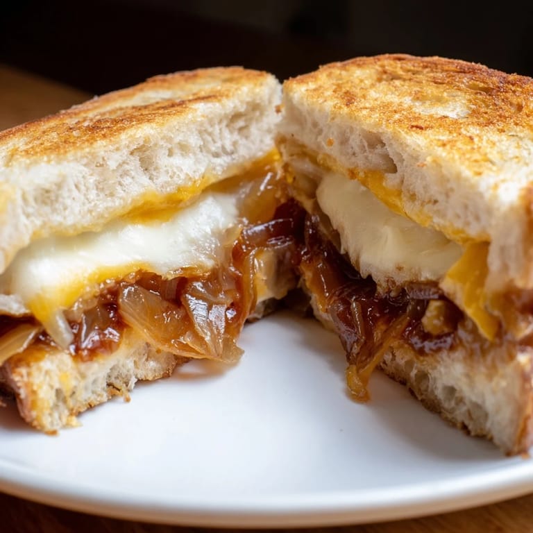 Save There was a Tuesday evening when the fridge looked bare and I had only onions, bread, and cheese. I sliced those onions thin, let them cook low and slow until they turned glossy and bronze, and suddenly the kitchen smelled like a French bistro. What started as leftovers became the kind of sandwich I now crave on purpose. That sweetness against sharp cheddar, all tucked into crispy, buttered sourdough, taught me that simple ingredients can surprise you if you give them time.