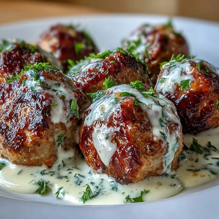 Save There's something about the smell of garlic hitting hot butter that makes you stop what you're doing and just breathe it in. I discovered these meatballs on a Tuesday night when I was tired of the usual chicken routine and wanted something that felt both comforting and a little fancy without the fuss. The combination of ranch seasoning with a silky garlic cream sauce transforms simple ground turkey into something people ask for again and again.