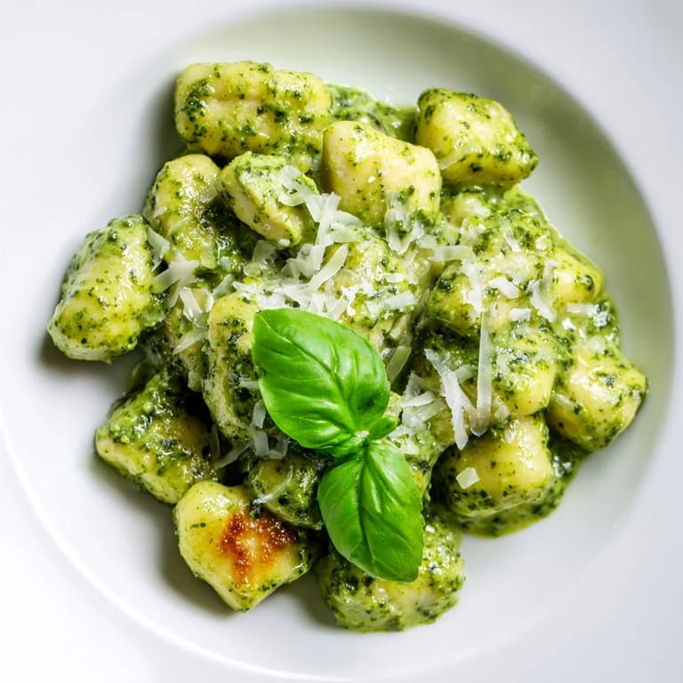 Save The first time I made pesto gnocchi, I was skeptical about pan-frying the little potato pillows instead of boiling them. But that crispy exterior transforms everything—suddenly soft dumplings become golden, chewy bites that hold onto sauce like magic. Now this is the dinner my husband requests when he is had an especially long day at work.