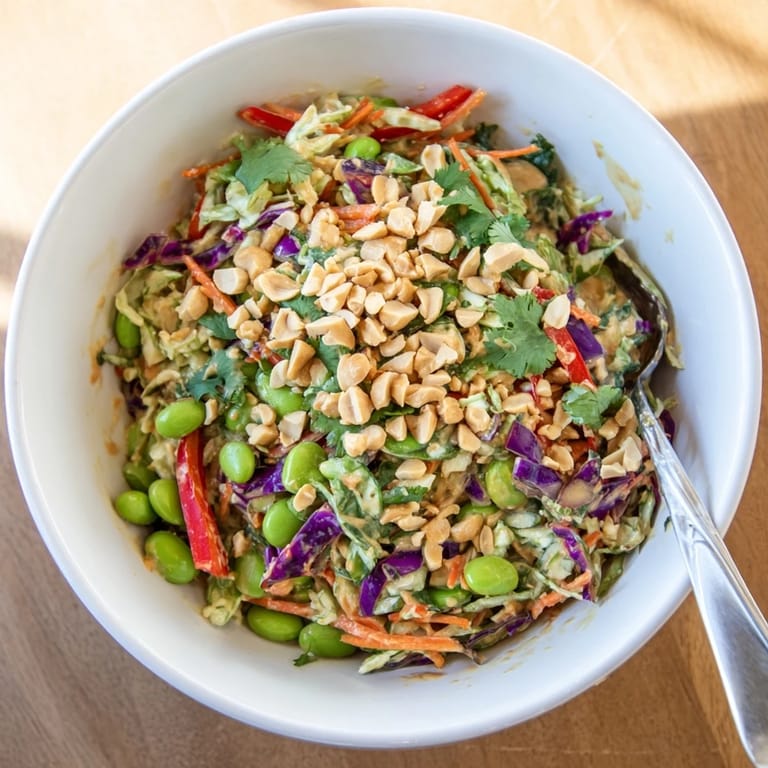 If you cant do peanuts, almond butter or sunflower seed butter work just as well in the dressing. For extra crunch, throw in snap peas, cucumber, or even thinly sliced radishes. I once added leftover grilled chicken on top and it turned into a full dinner. You can also swap the edamame for chickpeas if thats easier to find.