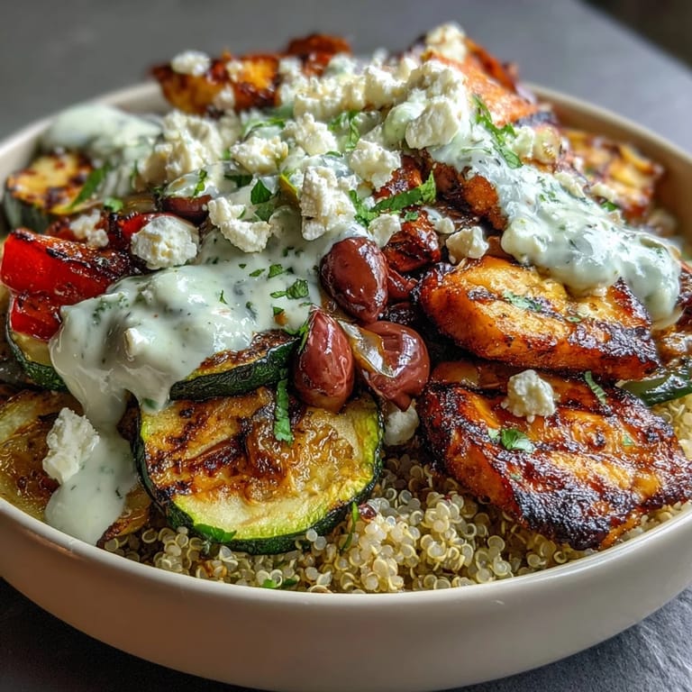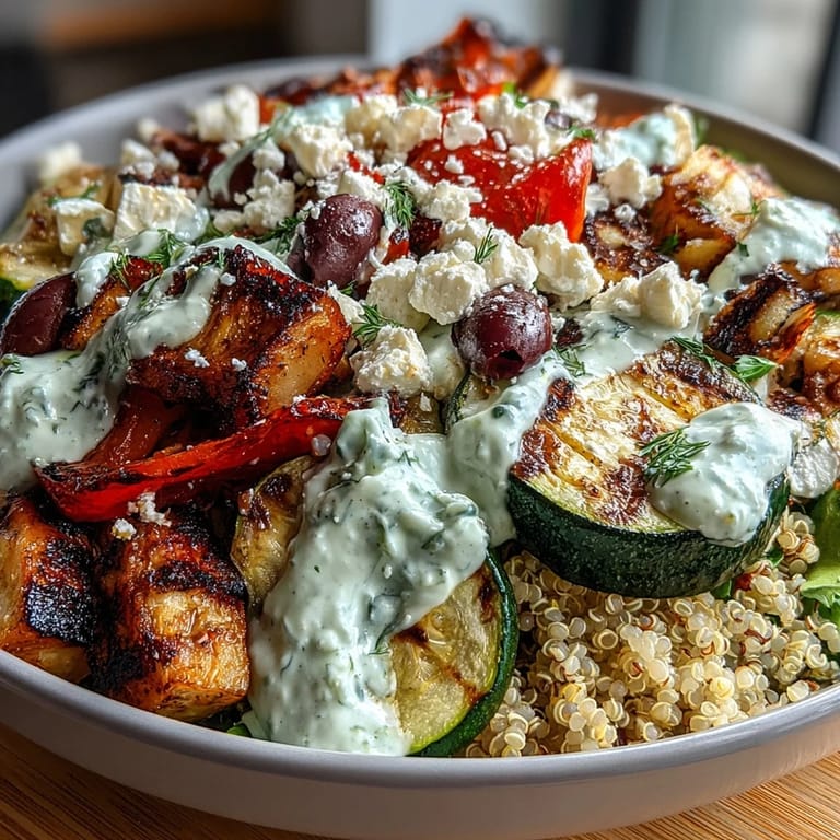 Save The smell of charred eggplant brought me back to a spring evening when I'd overloaded my tiny grill pan with too many vegetables at once. Everything steamed instead of seared, and I learned that patience and a hot surface make all the difference. Now I give each piece room to breathe, letting those beautiful grill marks form while the kitchen fills with smoky sweetness. This bowl became my weeknight anchor, colorful and forgiving, never quite the same twice.