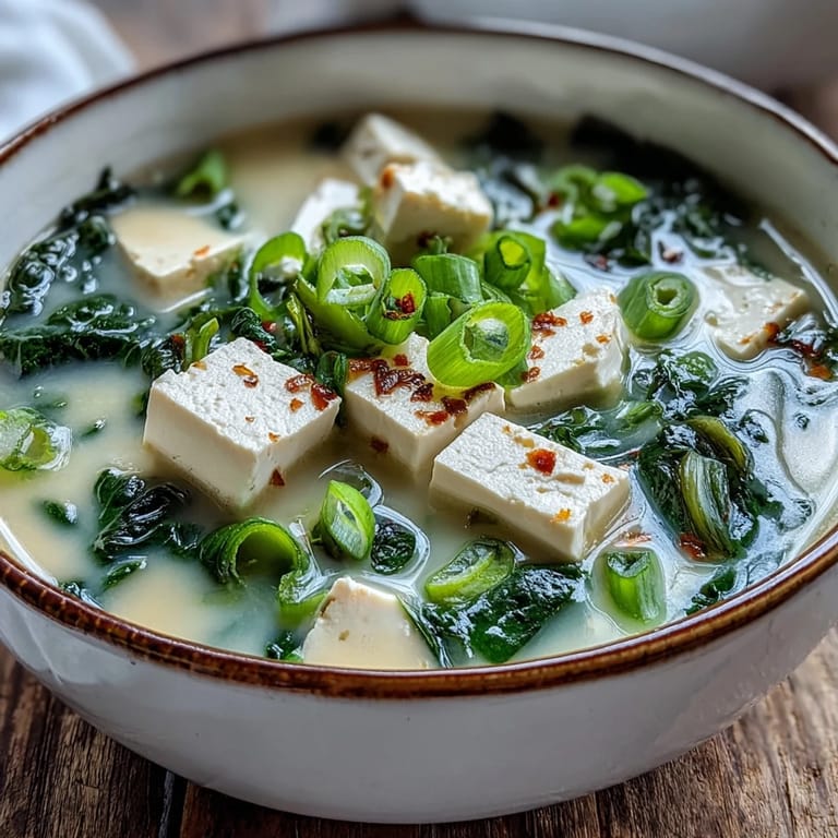 There's an art to serving this properly—the warmth of the bowl matters, and the way you arrange the elements as they're ladled in. Take a moment when you're plating, especially if you're making this for someone. Let them see the tofu cubes suspended in that amber broth, the spinach settled at the bottom, the bright green onions floating on top like a garnish from someone who cares about details.